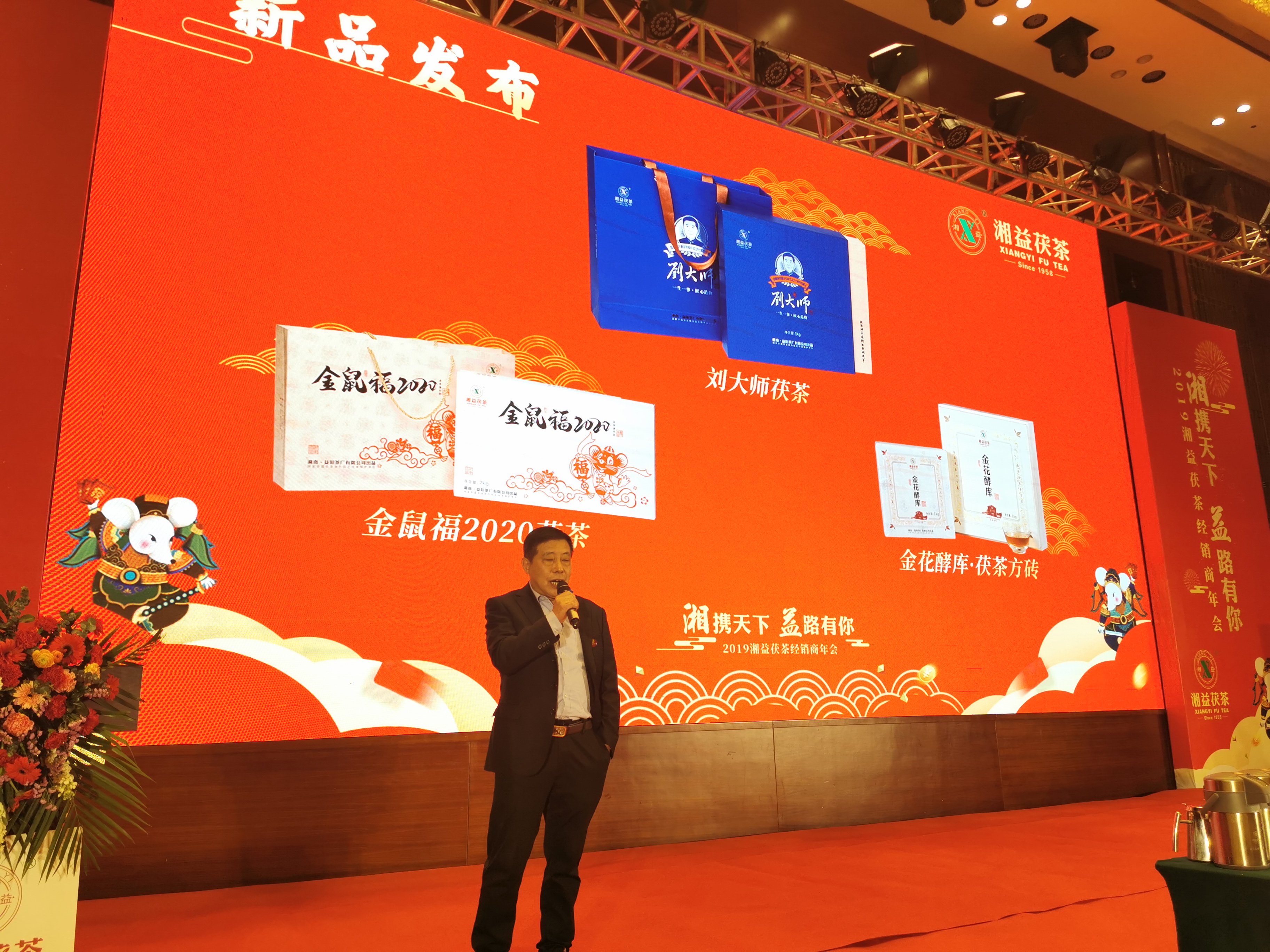 在下午的年會中,先是年度新品發(fā)布,由茯茶國家非遺制作技藝國家級傳承人、中國第一批制茶大師,公司副總經理劉杏益大師做新品推介,有劉大師茯茶、金花酵庫方磚、金鼠福生肖茶、7319茯茶,這四款新品都傾注了湘益茶人的心血,得到了到場來賓的高度贊賞。