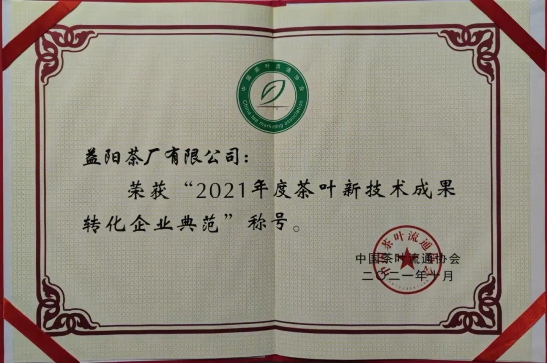 △益陽茶廠有限公司榮獲【2021年度茶業(yè)暢銷品牌】△益陽茶廠有限公司榮獲【2021年度茶葉新技術(shù)成果轉(zhuǎn)化企業(yè)典范】